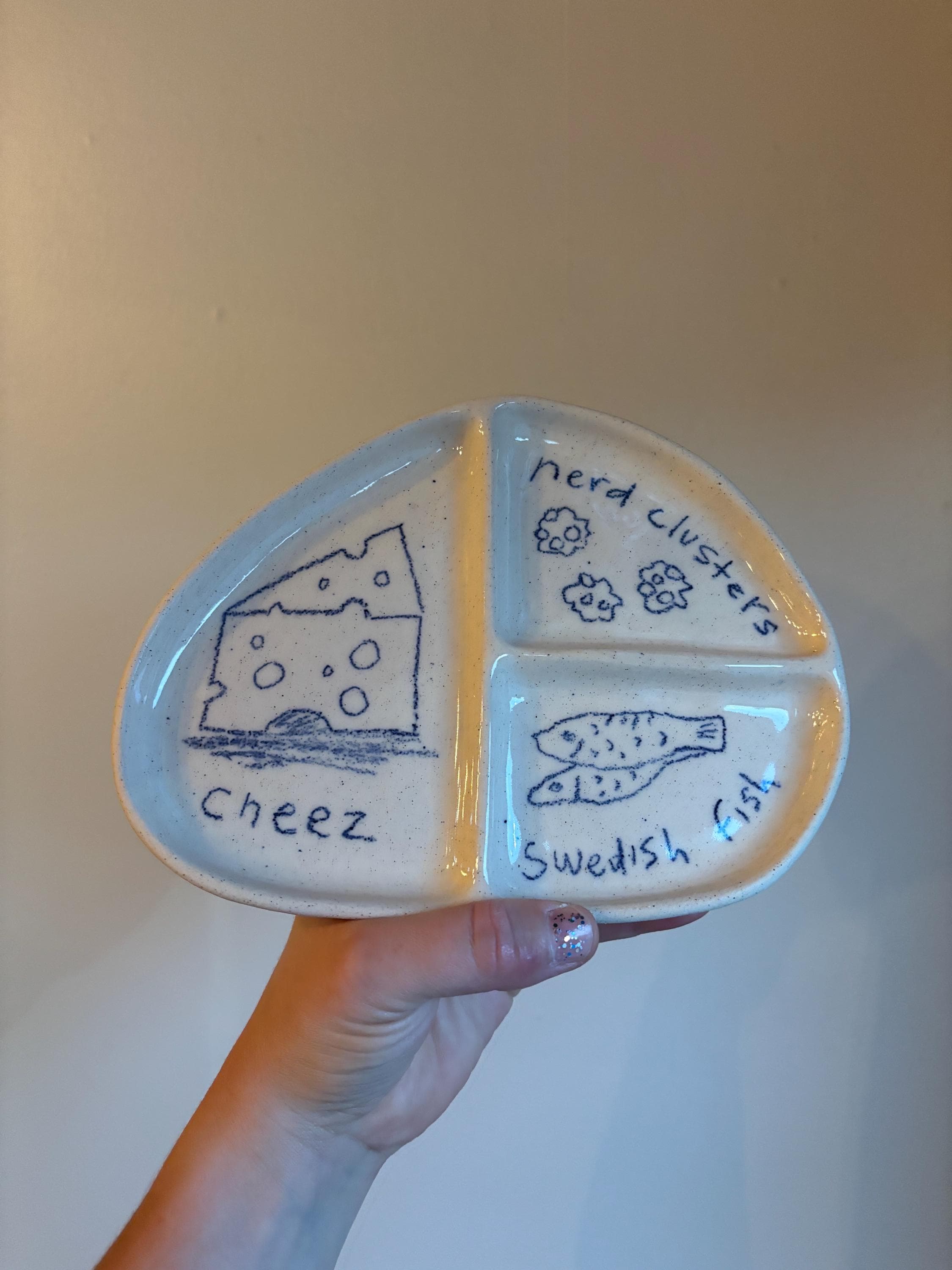 I love the snack plate I purchased!! It is so cute!! It did take much longer to ship, but that is totally fine as it is a handmade item. Totally worth the wait :) Thank you again!!