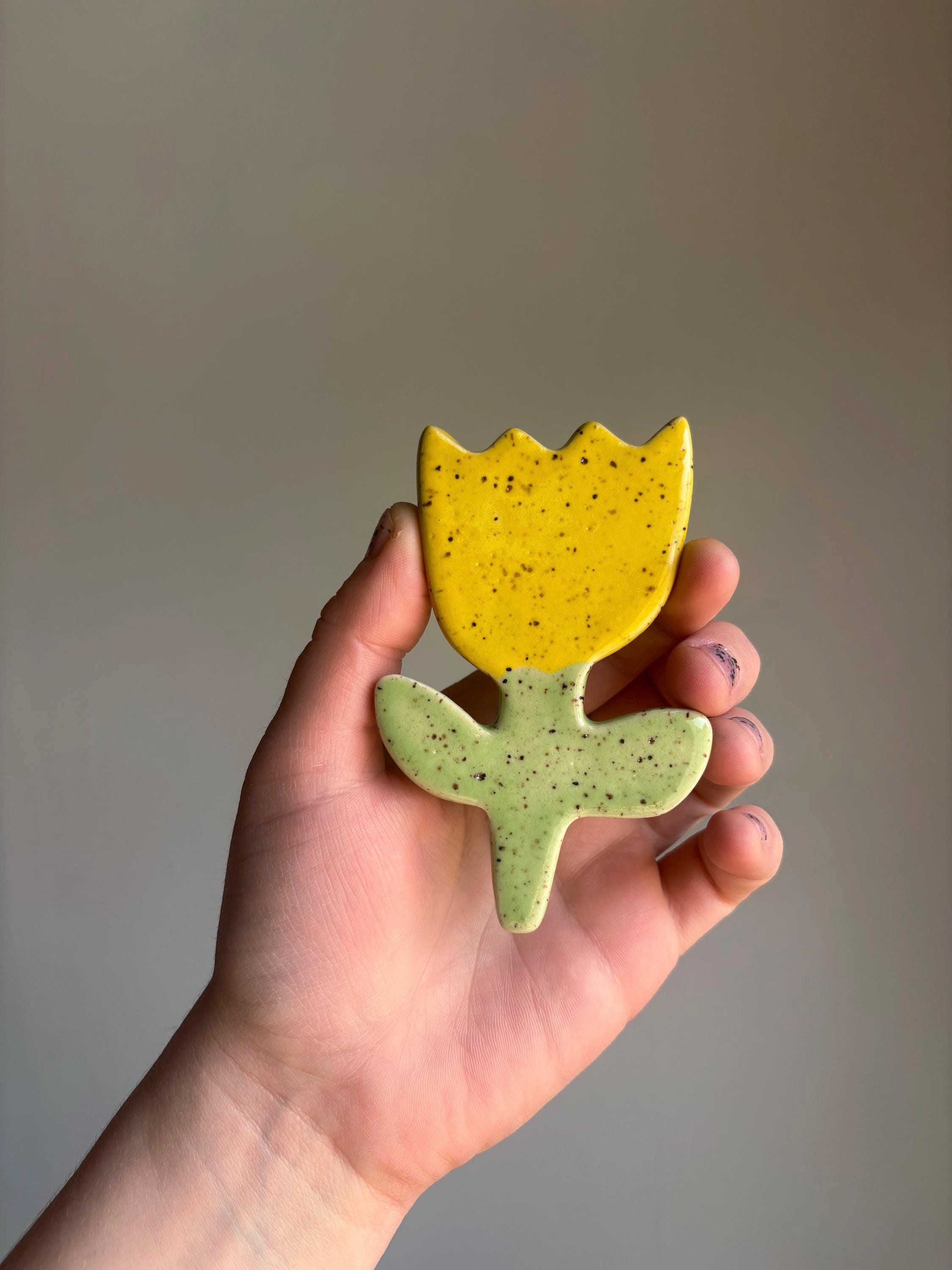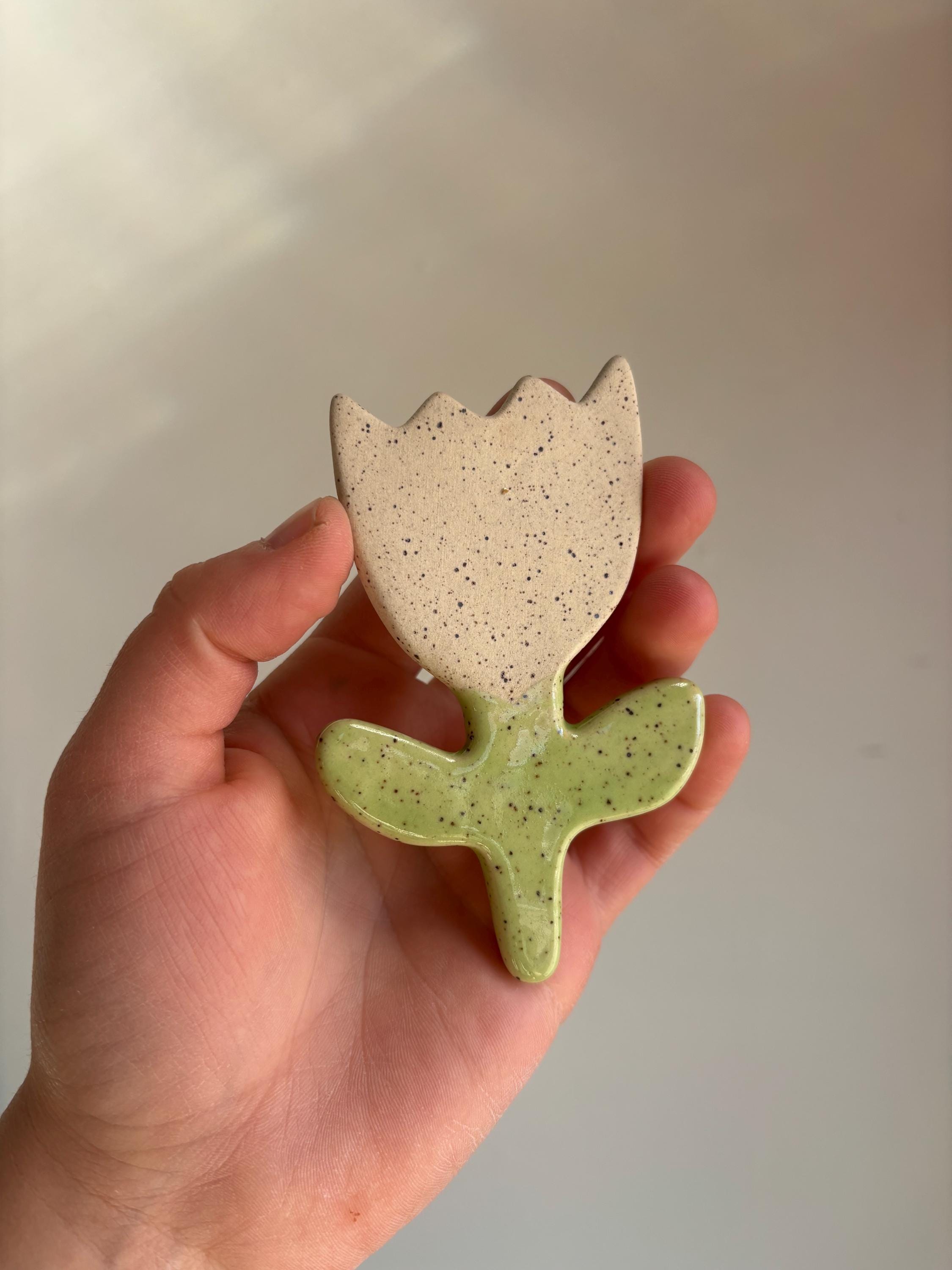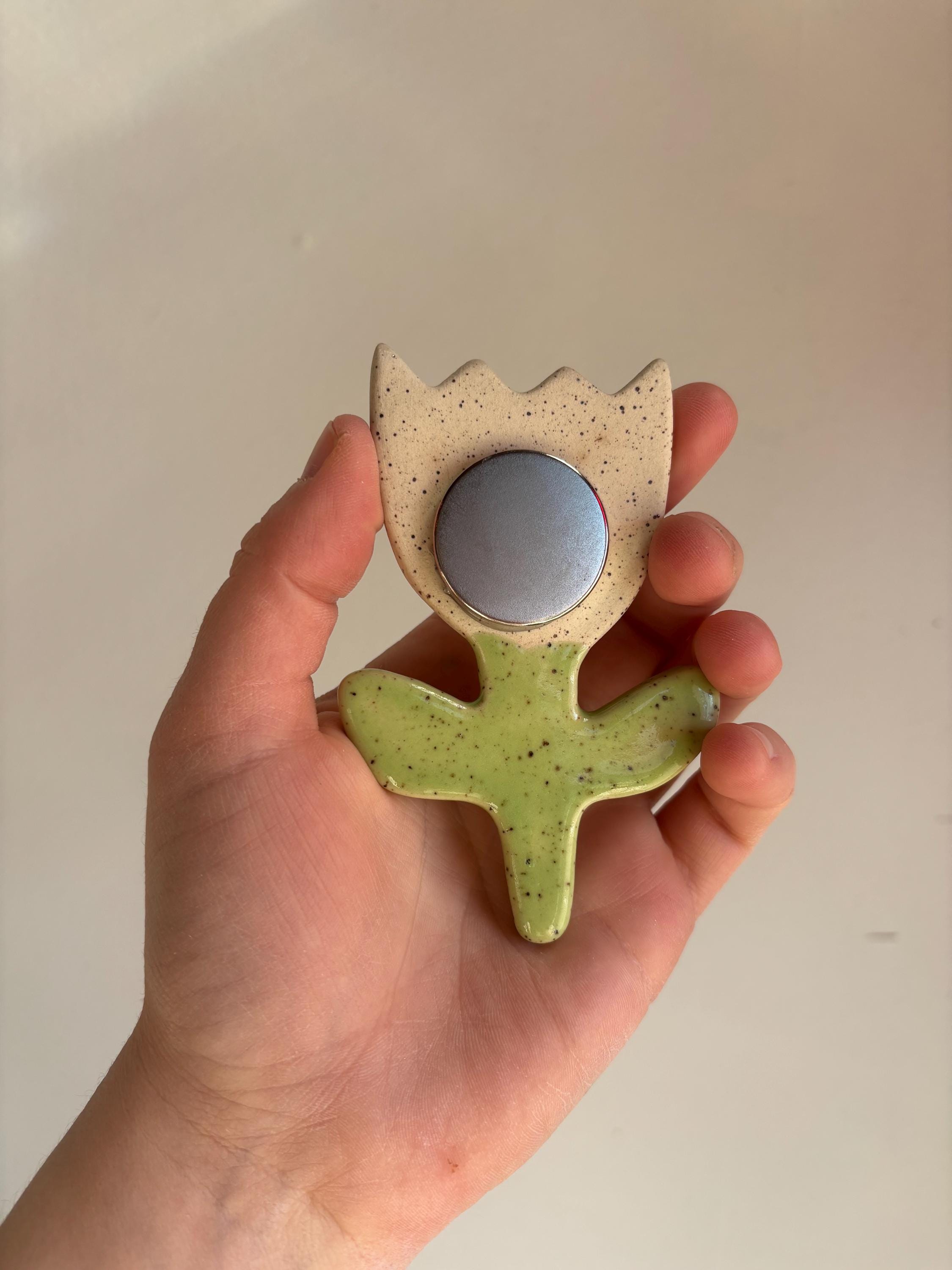 Large ceramic magnet made of speckled white stoneware with strong rare earth metal magnet for a good hold. Each one is hand crafted and will have slight variations.
